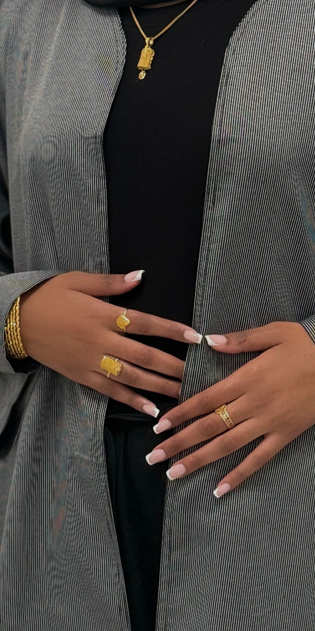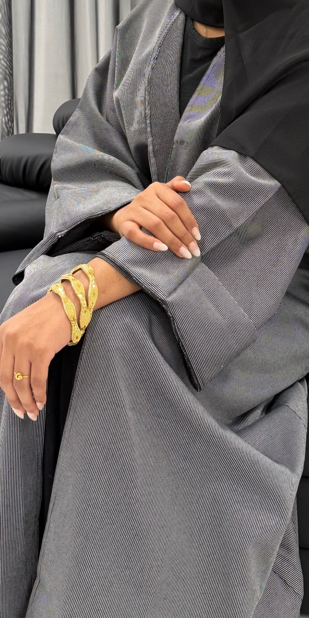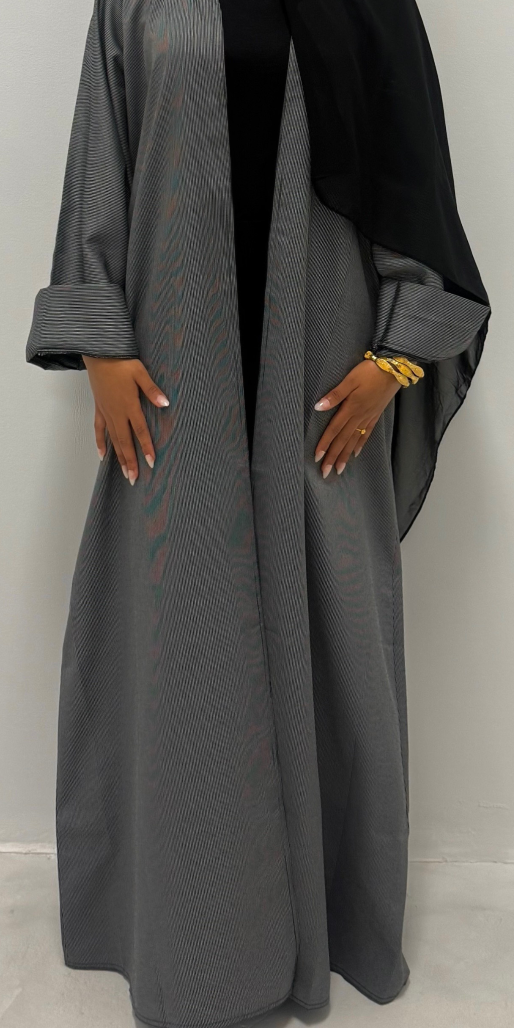 In timeless classic black with subtle stripes, the abaya's silhouette is designed to be effortlessly elegant and versatile for any occasion.
